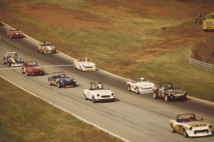 Joe has a slow start in the Datsun, but is soon to lead at the end of lap
