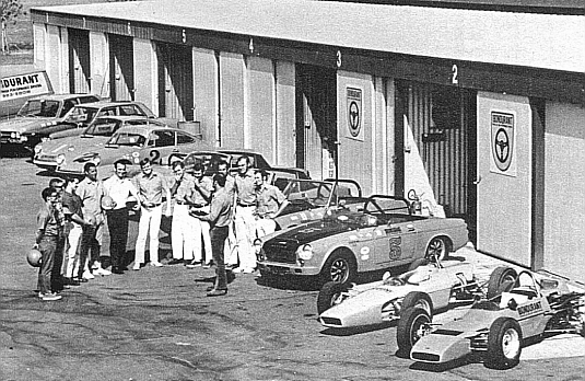 Bob's line-up in 1971 at Ontario Speedway, Los Angeles Note Bob's new Porsche line-up alongside his existing Datsuns