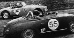 "I can recall one incident at Virginia International Raceway which caused great excitement. The back straight is quite long with a sharp right hander at the end, a short straight and a sharp descending left turn, downhill to a right hander onto the front straight. I over cooked it going into the turn and continued off the track sideways toward a steep embankment. Rather than go over rolling I spun the car around and went over backward, ending up in a ravine about half way down the hill. I had kept the engine running and was able to take off down the ravine through thick bushes filled with berries, back onto the track (maintaining my position!) and finishing the race. My car and I were covered with the red juice from the berries and the corner workers, my crew and the spectators all looked very concerned - they thought that I was covered with blood. It was hilarious when I pulled into the pits." "In another race weekend in California I was enjoying some practice laps on the Saturday when I came round a bend to be confronted by the side view of a Porsche which had spun off, only to be driven back on the track (against the rules). I could do nothing but hit the car, wrecking my front end, including the suspension. Back in the pits it looked hopeless. We did not carry spare suspension hardware and there were no other Datsun racers with any parts we could borrow. While we were checking it over, a young man came out from the group of close spectators to say that he had a Datsun Roadster back home and we could borrow any parts we needed from that. As this was the only offer we had, we packed our tools and followed him home, over an hour away. That evening we unbolted the front end of his car, leaving it jacked up overnight. Back at the track early the following morning we stripped down the wrecked suspension, replaced it with his stock items and she was ready to race. That day we lined up on the track and, remarkably, we finished well. Afterwards we stripped her down and made the trip back to the young man's home, where we put his stock Datsun back together, very grateful but very weary. If that car is still around it has a story to tell, but the present owner may not know it." Col.George |