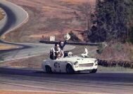 Joe's ratio of victories to races was therefore 63%, an incredible achievement. As well as the National Championships, Joe won no less than 22 Divisional Championships, in the SCCA's North East Region, 5 in a Sprite, 16 in a Datsun and one (in 1976) driving both. Joe also has the distinction of qualifying for 28 consecutive National Runoffs in G Production, from 1969 to 1986. During his Datsun Roadster race career, driving in the SCCA's DC Region, Joe campaigned both high windshield and low windshield 1600s, in varied colour schemes and with some interesting modifications. The green car you see on these pages belonged to a real friend of Joe's, Roberto Lorenzutti, who also campaigned this 1600 Roadster in G Production. Joe had unintentionally modified his bodywork in one National meet, and in return for Joe building Roberto an engine, Roberto lent Joe a car and straightened and painted Joe's 1600. Joe carried out all the engine and chassis work on his cars himself. However, he could not have achieved his success without the assistance of a number of dedicated people, who all volunteered large amounts of time and effort. Joe's wife, Lois, followed him to almost every race, timing his qualifying and completing the paperwork. Lois was herself a several time Autocross Champion. On the occasions that she was Joe's only pit crew, Lois also helped out with the maintenance. At one event, when Joe had to pull the engine to replace the transmission, Joe remembers that Lois helped out, "using wrenches like a real pro".