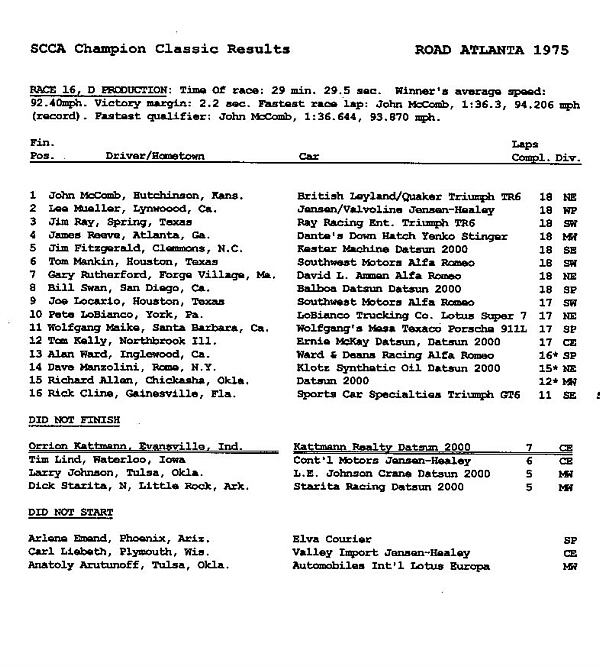 1975 SCCA Champion Classic results