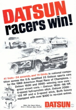 1967 Bob Sharp 1600 Advertisement Rare 1967 Bob Sharp Advertisement 1968 Nissan Ad 1969 ARRC Ad Datsun Clothing